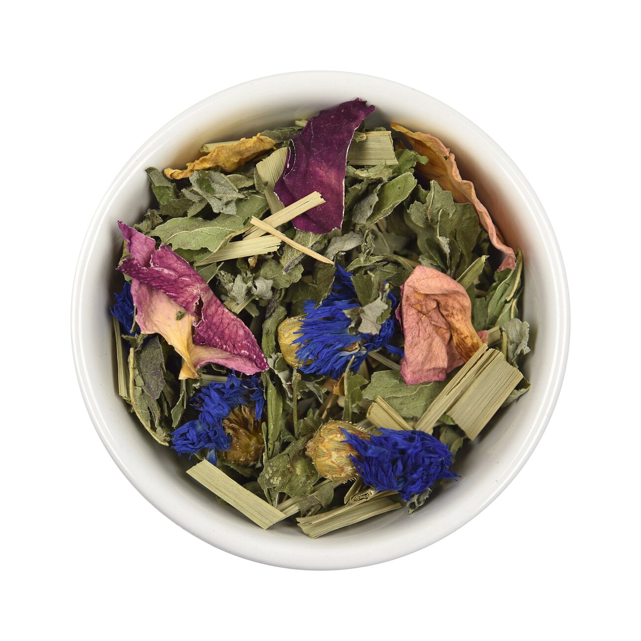 Osvěžující a chladivá bylinná směs s citronovou trávou, mátou peprnou a kardamomem. Právě kardamom propůjčuje této aromatické směsi tu správnou kořeněnou chuť. První sluneční paprsky jara jdou ruku v ruce s touto směsí, která rozproudí váš organismus a motiv zamilovaných zajíčků ztvárňuje jedinečnost tohoto ročního období.