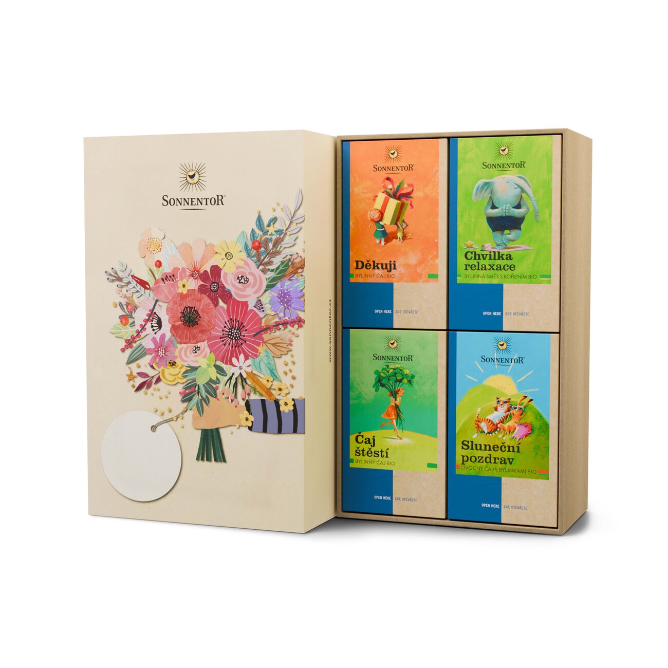 Hledáte něco, co vaše nejbližší zaručeně potěší a udělá jim radost? Obdarujte je dárkovou kazetou skvělých čajů, které zahřejí na těle i na duši. Na visačku kytice můžete vepsat i milý vzkaz.