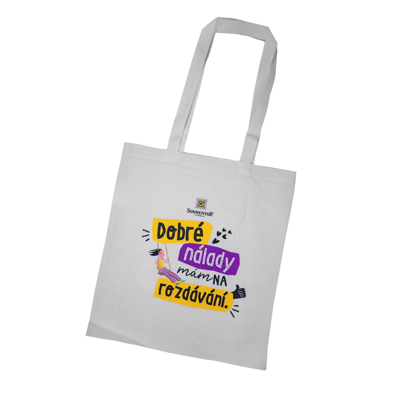 Dobré nálady mám na rozdávání - plátěná taška ze 100% biobavlny pro pohodlné nošení přes rameno i v dlani. Je praktická a skladná.