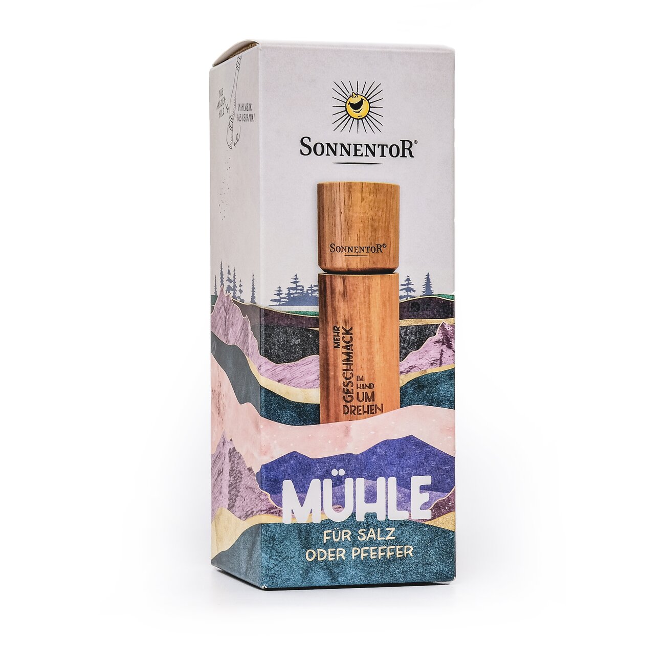 Salz- oder Pfeffermühle mit Logo und Spruch