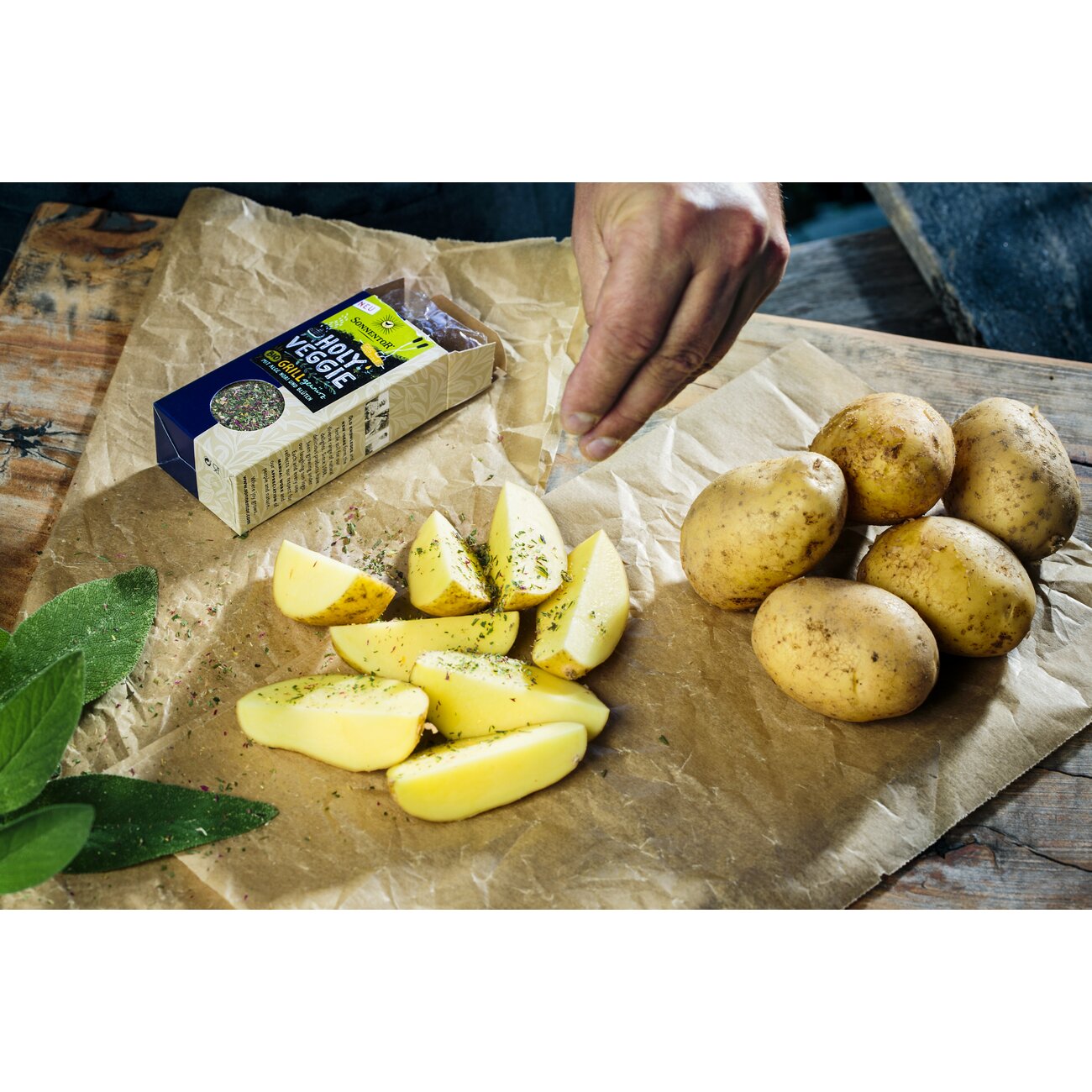 Gemüse ist dein Fleisch? Holy Veggie rückt es ins Scheinwerferlicht einer jeden Grillerei. Bärlauch und Alge sorgen für besondere Aromen, die die vermeintliche Beilage ganz schnell zum Mittelpunkt der Aufmerksamkeit machen. Mit Öl mischen und Gemüse damit bestreichen. Es kann losgehen!