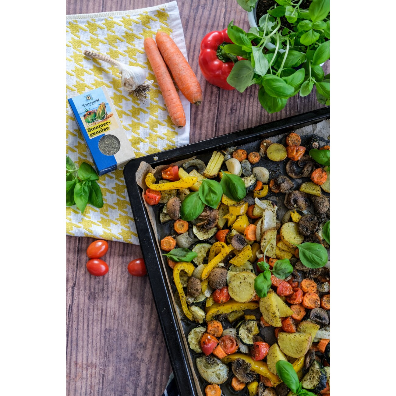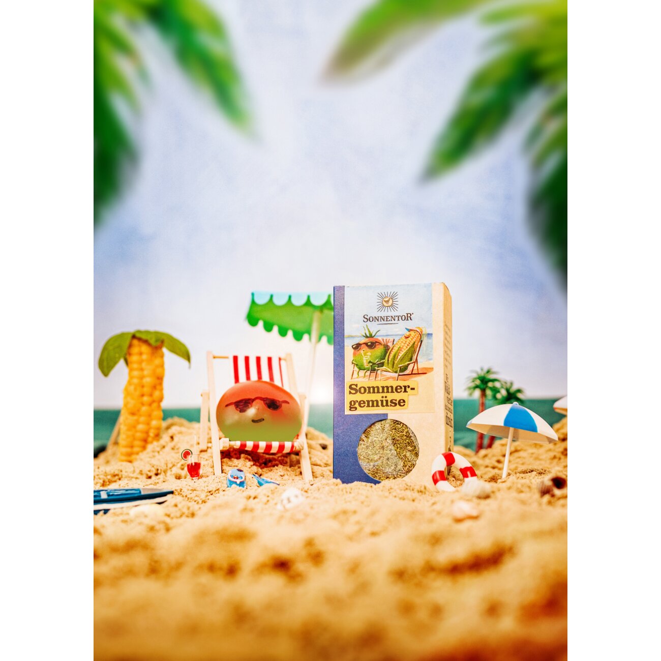 Wenn Tomate und Maiskolben ganz gemüslich am Strand sitzen, kann das nur eines bedeuten: Es ist Sommer! Damit die reiche Ernte aus dem Garten ruckzuck zum schnellen Mittagessen für warme Tage wird, haben wir diese Gewürzmischung kreiert. Macht alles von Aubergine bis Zucchini zum sommerlich-mediterranen Geschmackserlebnis!