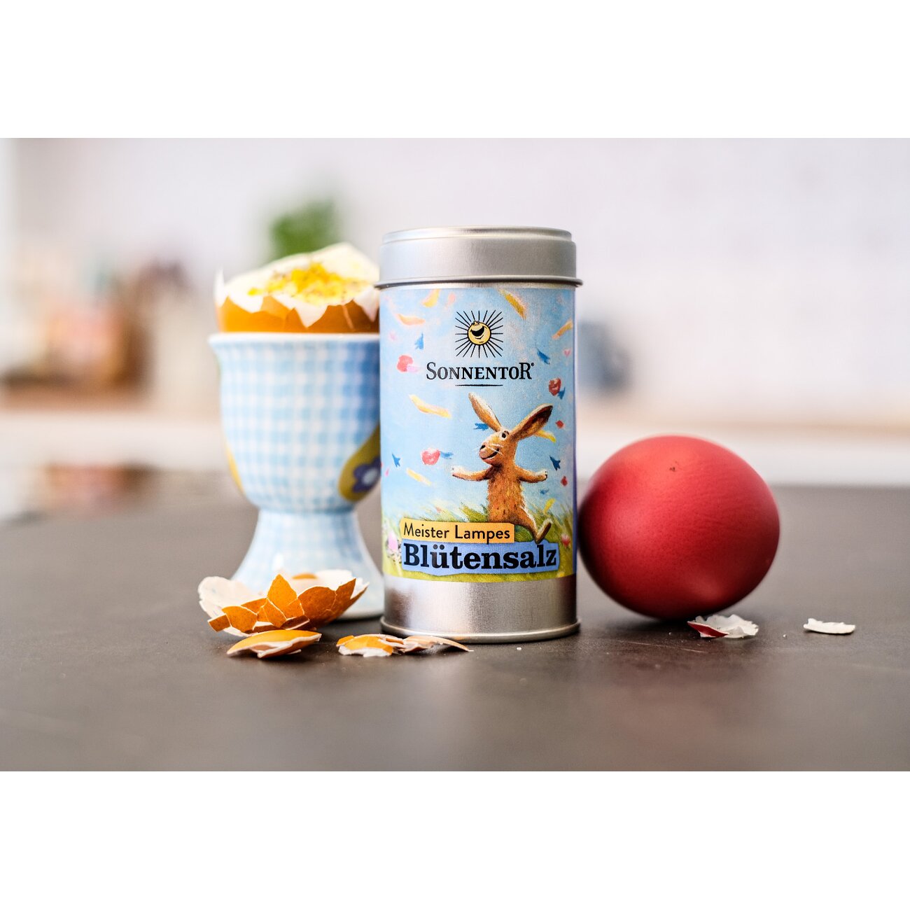 Der Osterhase läuft geschwind und bringt die Würze mit, die stimmt. Blüten, Kräuter, welch' ein Duft - das Osterei danach nur ruft. Das Ei, der Käse und der Fisch, schmecken mit dieser Mischung köstlich frisch. Sie zaubert bunte Gaumenfreuden, die mediterrane Genüsse bedeuten. Ins Osternest, so soll es sein, muss Meister Lampe mit hinein!