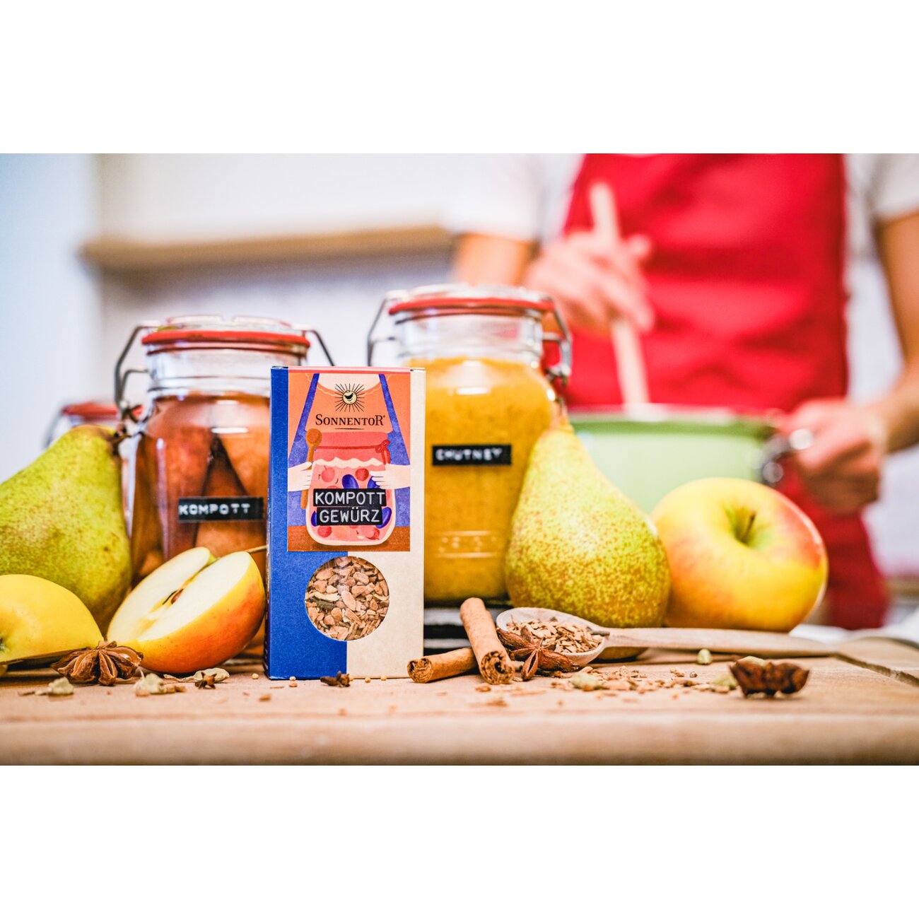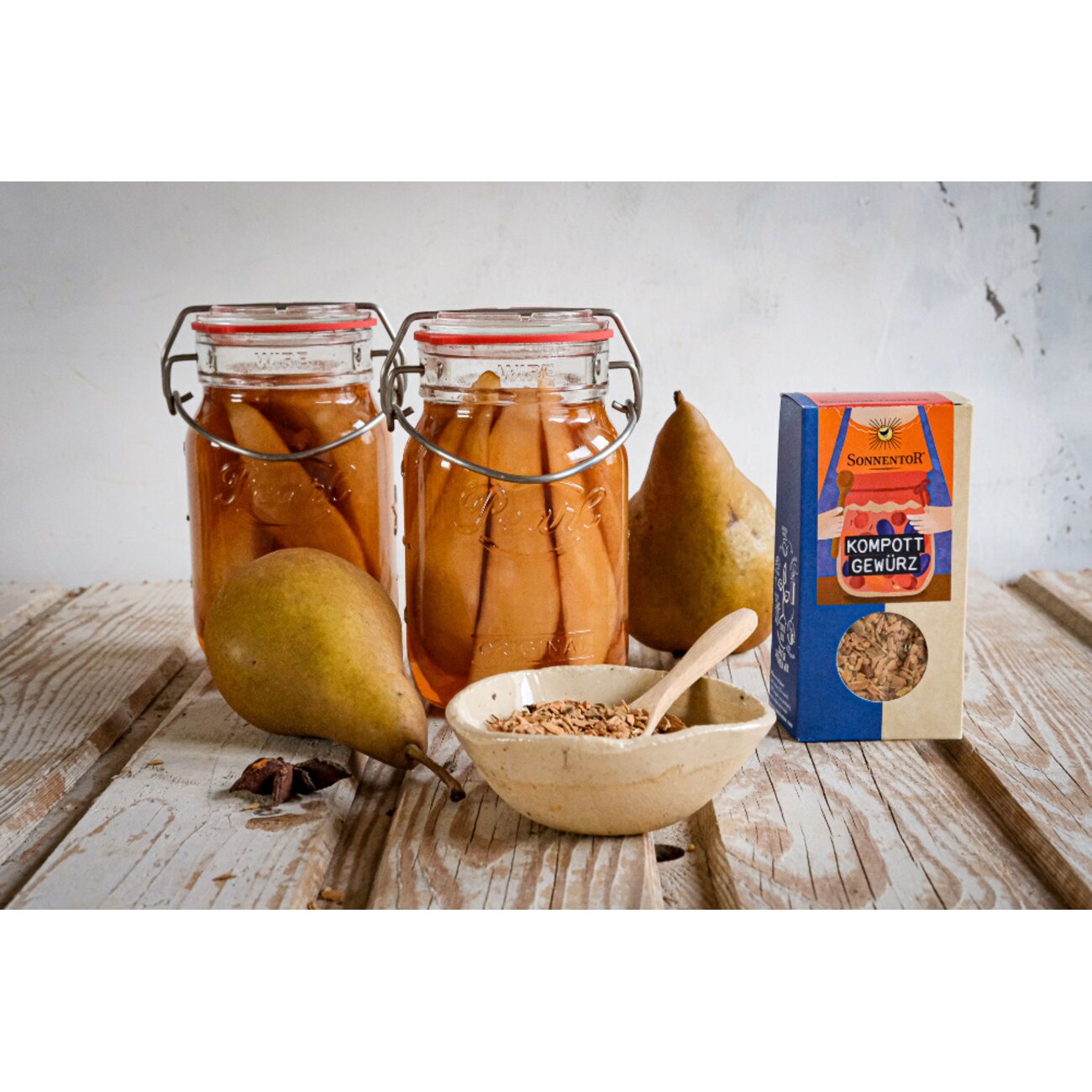 Der Geschmack von Sommerferien bei Oma: Birnenkompott und Hollerkoch! Mit dieser Gewürzmischung verfeinerst du Desserts oder konservierst fruchtige Erinnerungen an warme Tage im Handumdrehen. Wenn es draußen stürmt und schneit, zauberst du einfach ein Glas voll Sommer hervor. Unser Kompott Gewürz ziert jede Frucht von Apfel bis Zwetschke. Grüß Gott, Frau Kompott!