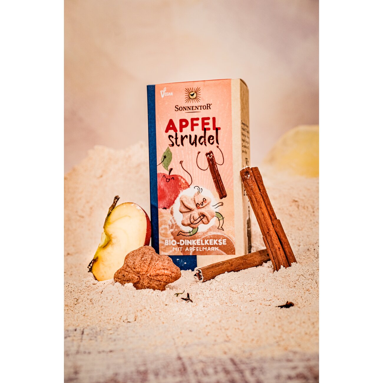 Du bist zum Kaffee eingeladen oder erwartest Besuch? Kein Grund ins Strudeln zu kommen. Mit den Apfelstrudel-Keksen mit Apfelmark kannst du das Nudelholz im Küchenschrank lassen. Die Kleeblatt-Form sorgt zusätzlich für Glücksmomente am Gaumen. Das perfekte Geschenk für Fans der fruchtigen Mehlspeise oder zum selbst Vernaschen – ganz ohne Palmöl.