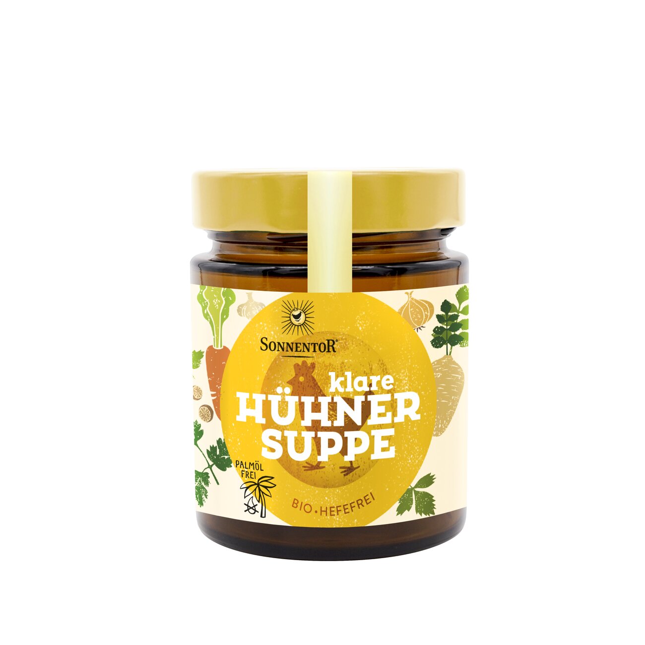 Maisstärke bio, Speisesalz, Gemüsemischung 11% bio (Karotten bio, Zwiebeln bio, Pastinaken bio), Rohrzucker bio, Hühnerfleischpulver 5% bio, Ysop bio, Hühnerfett 3% bio, Trennmittel: Calciumcarbonat; Ingwer bio, Petersilie bio, Kurkuma bio, Knoblauch bio, Muskat bio, Liebstöckel bio, Antioxidationsmittel: Rosmarinextrakt bio;.