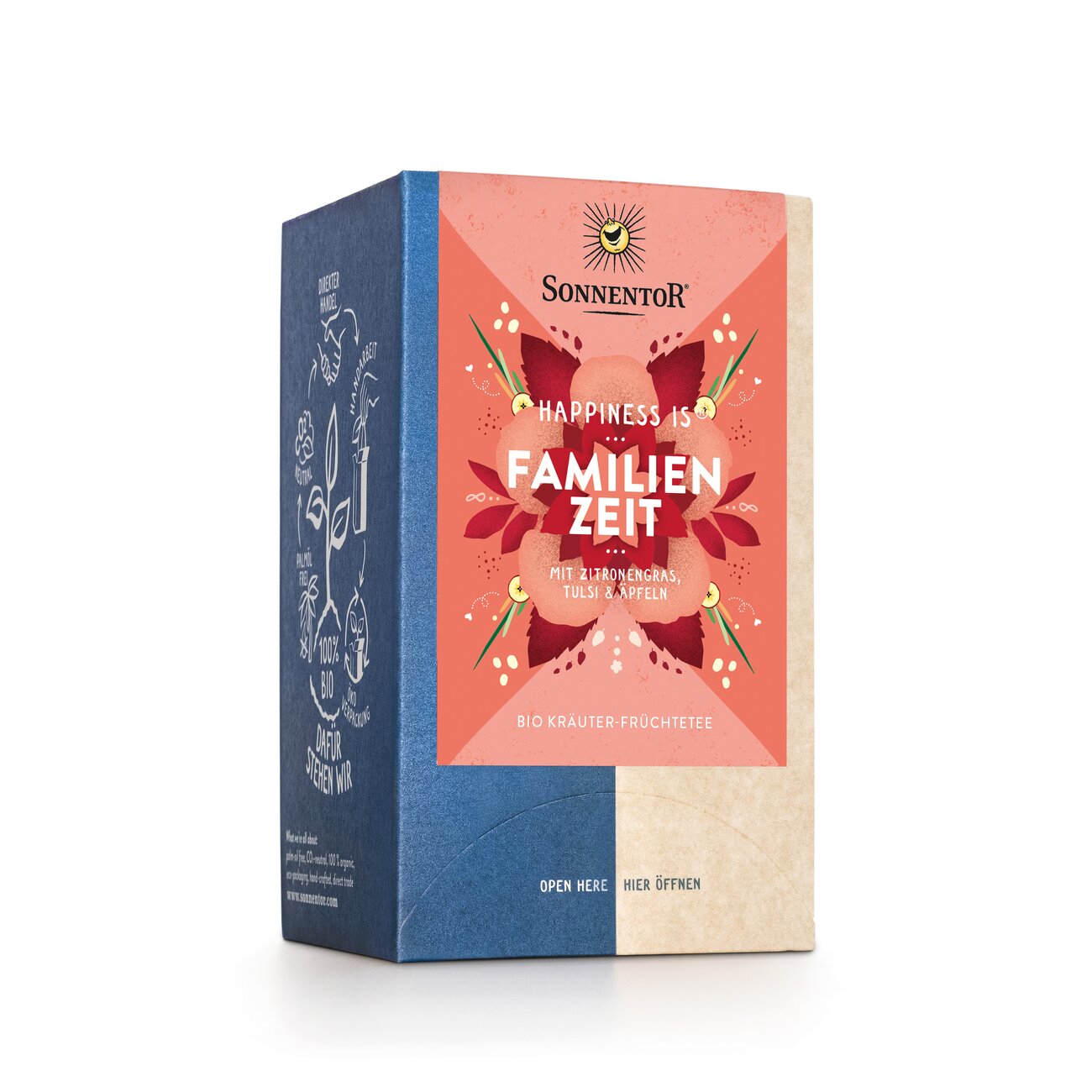 Glück ist, wenn gemeinsam Teetrinken zur Familiensache wird. Wer auch immer zu deiner Familie gehört – der zitronige und blumige Genuss in der Tasse bringt euch alle zusammen. Zitronenmelisse, Hibiskus und Tulsi Basilikum harmonieren perfekt miteinander – genau so wie du und deine Lieblings-Menschen. Nimm dir Zeit!