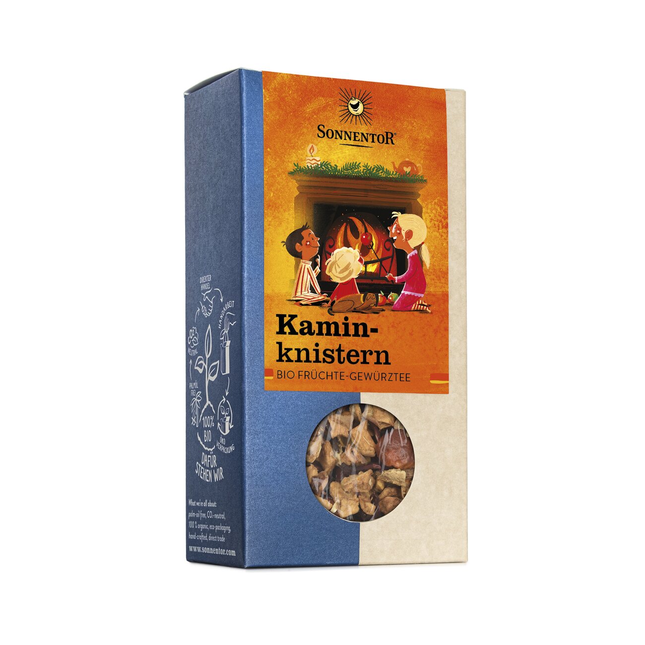 Der Kaminknistern Früchtetee wird bei mir am liebsten in einen Kinderpunsch verwandelt. Mit ein wenig Orangensaft, Nelken, Zimt und einer Prise Zucker braucht man auch gar keinen Kamin mehr um das Kaminknistern zu genießen.
