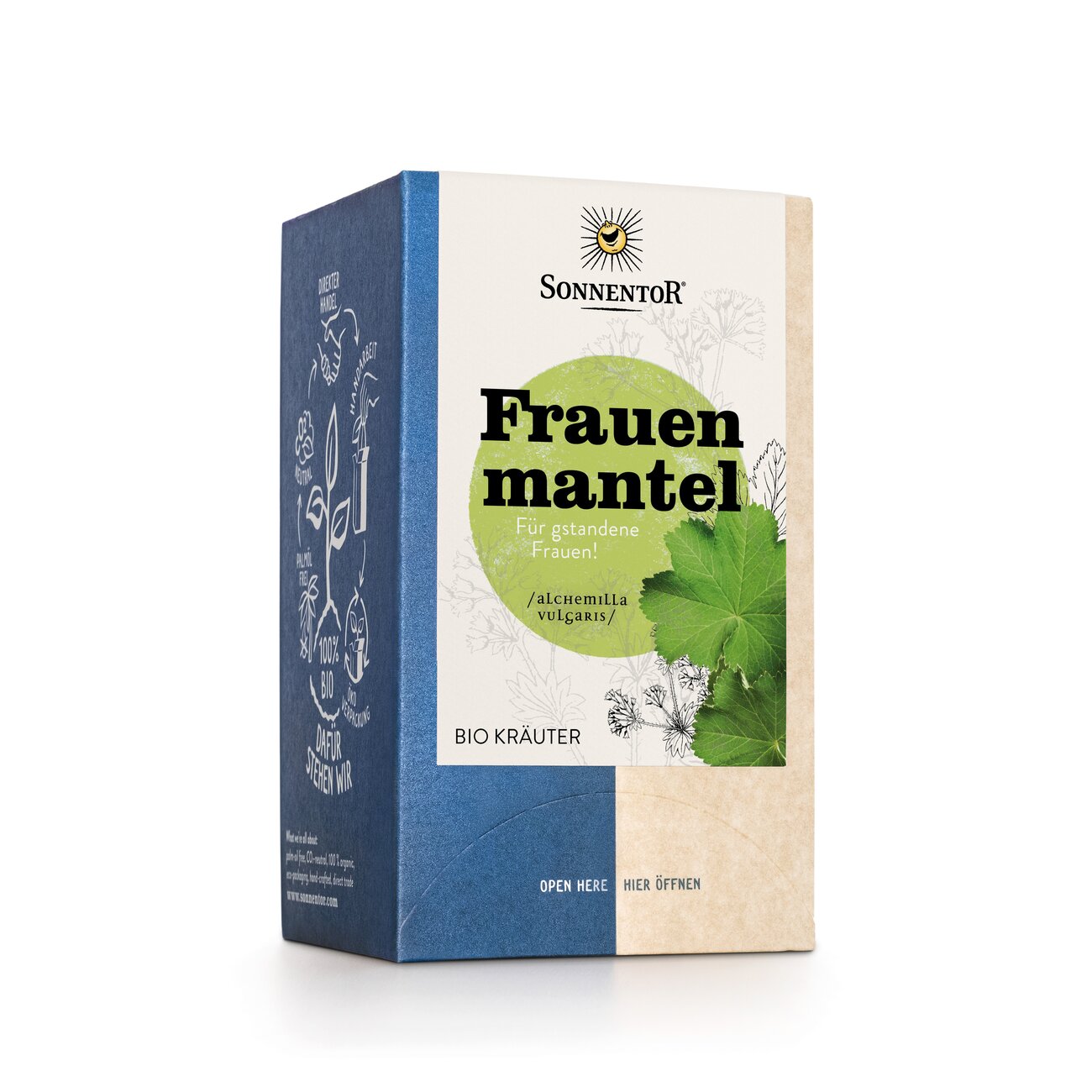 Im Frauenmantel findet jede Frau einen treuen Wegbegleiter, der die bunten Facetten ihrer Weiblichkeit zum Strahlen bringt. Das Teeregal bereichert er mit seinem pfeffrigen, blumigen Aroma ungemein. Nicht umsonst verehrten bereits die Alchemisten das fächerförmige Blatt. In seinem Kelch sammeln sich glitzernde Tropfen, denen eine besondere Zauberwirkung zugeschrieben wird. Auch als Frauendank und Tränenschön bekannt.