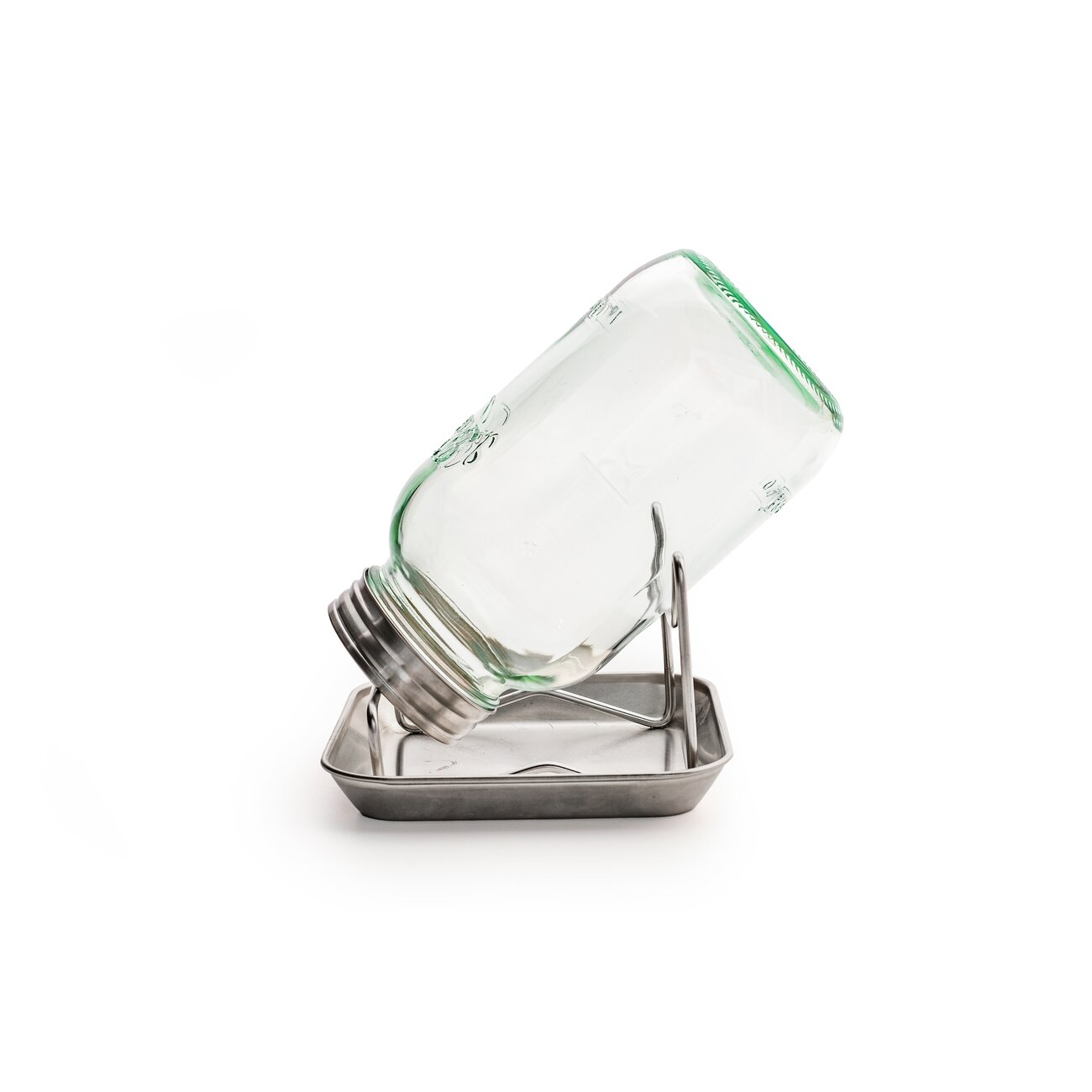 3. Das Glas mit dem Deckel nach unten schräg auf eine Unterlage stürzen, damit das restliche Wasser abfließen kann.