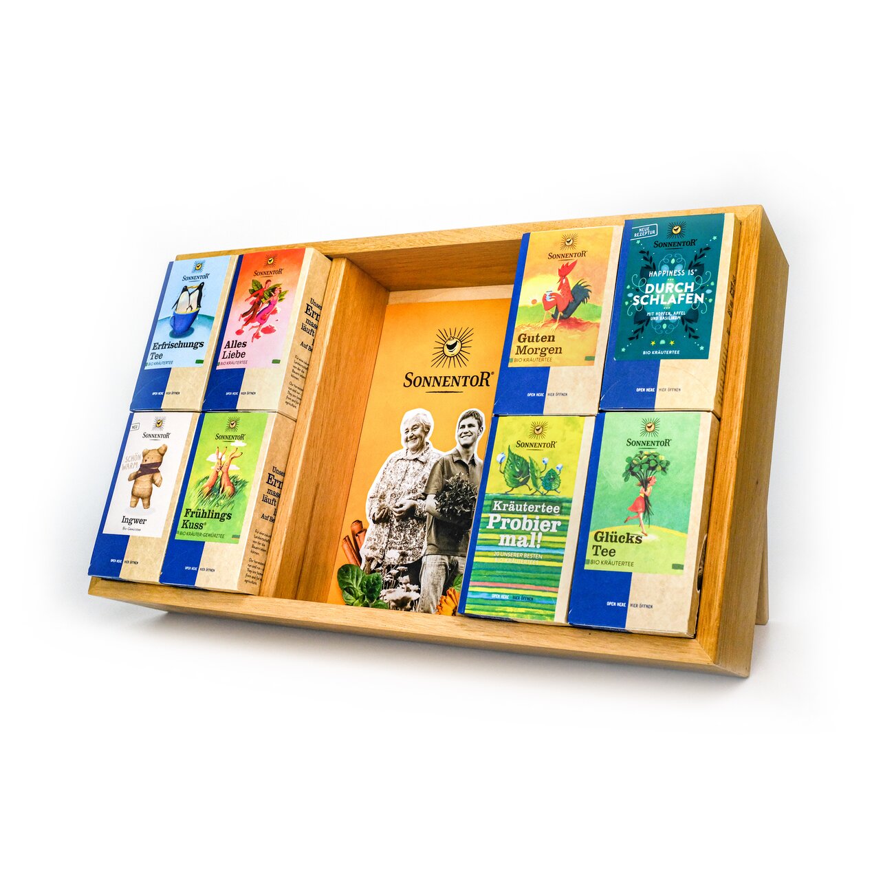 Praktischer Holzaufsteller für deine SONNENTOR Tees!