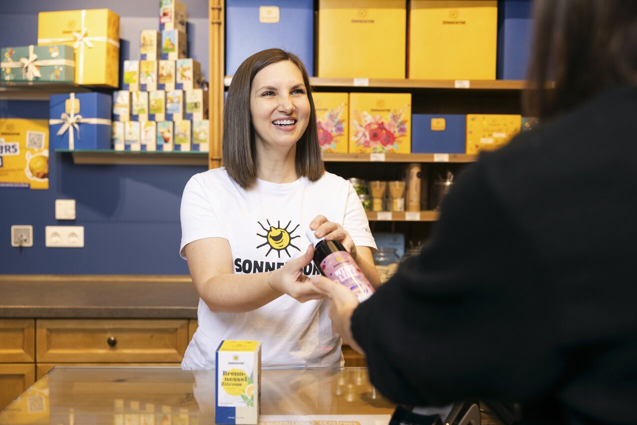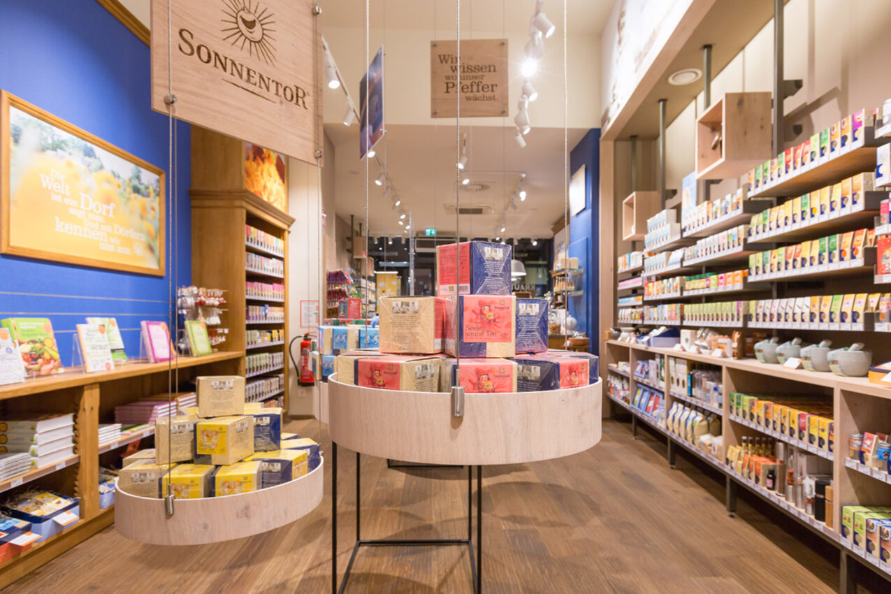 In the delightful shop, where modern design is combined with traditional elements, you will find the complete range of SONNENTOR products - from our organic tea specialties and a wide variety of spices to our Bio-Bengelchen for children, Hildegard products and creative gift ideas!